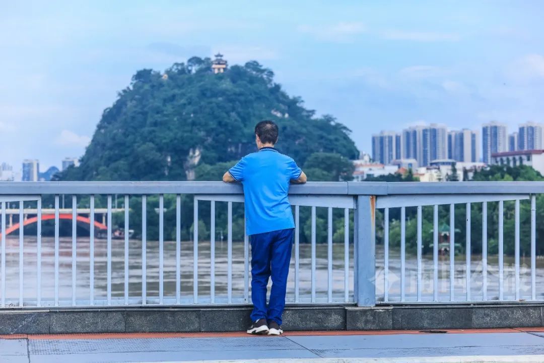 6月22日,柳州市民在柳江河边看水情。通讯员刘晓升 摄